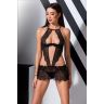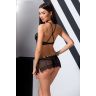 Откровенная, смелая сорочка Yona выполнена из эластичного кружева. Полуоткрытые чашки на косточках усилены поролоном для лучшей посадки груди. Регулируемые бретели изящно перекрещены на спинке. В комплект к сорочке идут трусики-стринги. Изделие упаковано в красивую плотную коробку.