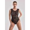 Черное боди Volare из элегантного кружева и эластичного тюля прекрасно смотрится на женской фигуре.