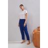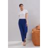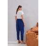 Стильные брюки в синем цвете. Яркая модель, подчеркивающая фигуру. Широкий фасон, сужающаяся к низу штанина. Высокая талия дает правильные акценты и подчеркивает естественную красоту фигуры. Модель дополнена кармашками. Синий цвет позволяет использовать брюки для строгих и легких образов в городе и на отдыхе. Элегантная и современная модель.