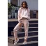 Пудрово-розовые джоггеры DK02F 05 с завышенной талией. По бокам карманы, пояс и низ штанин на мягкой резинке. Сбоку голографический логотип.