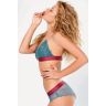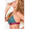 Кружевной бюстгальтер с треугольными чашками изысканного цвета мурена. Легкая поддержка груди обеспечивается благодаря резинке сочного бордового цвета с полоской из люрекса, регулируемыми бретелями и плотным съемным поролоновым вставкам.