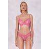 Роскошный бюстгальтер Coachella на косточках яркого розового цвета. Чашки на тонком поролоне с пуш-ап вкладышами. Внутренняя сторона чашки проложена хлопковым трикотажем, наружная покрыта красивым кружевом. Бретельки регулируются по длине. На спине застежка на крючки-петли. Между чашек красивое украшение в виде подвески и атласного бантика. Чашки поддерживают и приподнимают бюст, сохраняя при этом его естественную форму. Бюстгальтер декорирован стрэпами.
