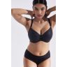Черный бюстгальтер на подкладке, обтянутый тонкой трикотажной тканью. Самое главное его преимущество: абсолютно гладкая поверхность ткани. Благодаря тому, что швы имеют мелкие и аккуратные стежки, они просто незаметны даже если носить сильно облегающую одежду.