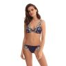 Роскошный бюстгальтер выполнен из нежной, эластичной ткани изумительного темно-синего цвета "Lauma Fabrics" SIA (Латвия). Плотные чашечки на косточках, декорированные роскошной кружевной вышивкой JIUN HER(Тайвань) бело-молочного цвета с цветочным орнаментом, великолепно подчеркнут грудь, придав ей соблазнительный объем и создав красивую линию декольте. Кружевное полотно плавно перетекает в бретели, украшая их ажурным краем. Глубокий вырез и элегантный бантик SERAM(Франция) украшают декольте. Тонкие гладкие бретели регулируются по длине.