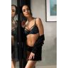 Чувственный мягкий бюстгальтер Saddie черно-синий. Верхняя часть чашки изготовлена из эластичной сетки с окантовкой. Нижняя часть чашки и перемычка покрыты красивым кружевом. Атласный бант между чашками. Спинка - двойная сетка. Бретели регулируемые, несъемные.