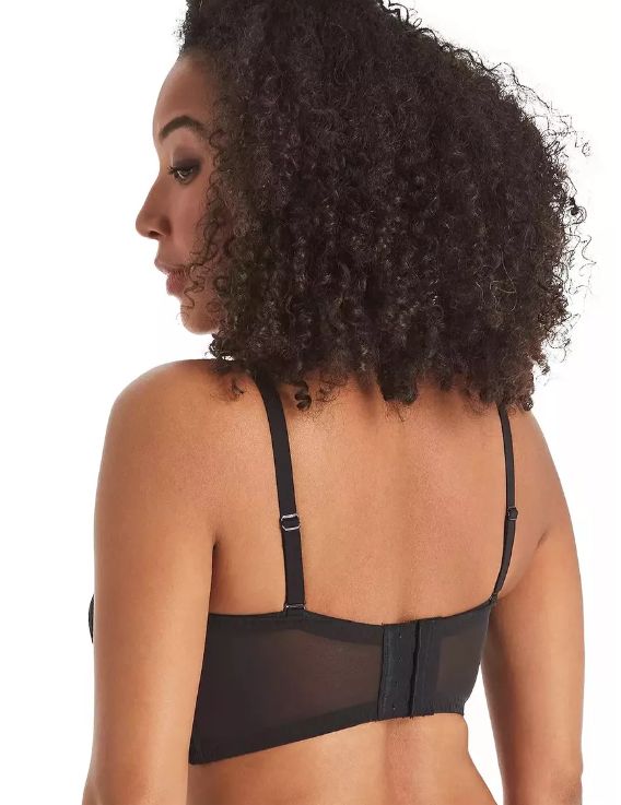 Мягкий и невесомый бюстгальтер-бралетт с формованными бескаркасными чашками на тонком поролоне. Чашки декорированы эластичным кружевом в форме треугольника. Удлиненная кружевная центральная панель на подкладке из ткани в сетку. Расширенные боковые панели из ткани в сетку, с вертикальными косточками. Мультипозиционные бретели регулируются на спине и отстегиваются, давая возможность перекрещивания. В комплект подходят трусы-шорты DMCLBS.