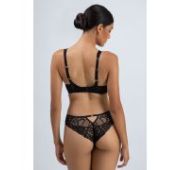Бюстгальтер Truffle Noir на косточках, с боковой поддержкой, нижняя часть чашки на уплотнителе, верхняя из нежного кружева. Внутри чашечки проложены хлопковым трикотажем. Бретельки не отстегиваются, регулируются по длине. На спинке застежка регулируется.
