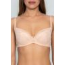 Бюстгальтер на поролоне на каркасах. Идеально приподнимает и поддерживает грудь, создавая красивую зону декольте. Выполнен из эластичного кружева и эластичного полотна. Внутри чашка продублированна хлопком. На стане бюстгальтера вертикальные упругие, корректирующие пластины, позволяющие прилегать к телу и не скручиваться боковой части бюстгальтера. Украшение: медальон с логотипом COQUETTE REVUE.