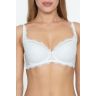 Бюстгальтер на поролоне на каркасах. Выполнен из эластичного кружева и эластичного полотна. На стане бюстгальтера вертикальные упругие, корректирующие пластины, позволяющие прилегать к телу и не скручиваться боковой части бюстгальтера. Украшение: бантик с подвеской из трех страз.