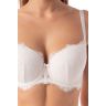 Формованные чашки из тонкого поролона. Широкий бочок из кружева укреплен вертикальной пластиной. Украшение: бантик.