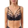 Бюстгальтер на каркасах с формованными чашками с вкладышами пуш-ап, внутренняя сторона проложена хлопковым трикотажем, снаружи чашки украшены кружевом. Особую пикантность модели придают эластичные стреп-ленты.