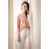 Нежная пижама для девочек-подростков Polly состоит из лонгслива и брюк. Лонгслив с длинным рукавом. Брюки на мягкой и комфортной резинке с принтом и с контрастным бантиком. Идеально подходит для сна и в качестве домашнего комплекта.