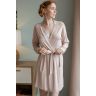 Женский домашний халат-пеньюар, без пуговиц, на запАх, средней длины, с длинными рукавами. Выполнен из благородного трикотажа цвета пыльной розы с серебристым блеском. Кружевная кокетка и отделка рукавов придает изюминку этой модели. Необыкновенная мягкость ткани на основе вискозы окутает Вас уютом и комфортом. Комплект можно дополнить сорочкой D-30 или пижамой М-122/Р-98.