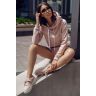 Пудрово-розовое укороченное худи DK04 05 с капюшоном. Рукава и нижняя кромка отделаны трикотажной резинкой, на груди фирменный логотип.