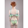 Раздельный купальник Espaniola выполнен из эластичного полотна в с разноцветным принтом. Чашка мягкая на тонком поролоне и косточках, есть боковые косточки. Лиф декорирован широкой оборкой. Бретели отстегиваются и регулируются по длине, пластиковая застежка на спине не регулируется. Плавки классические бразилиана.