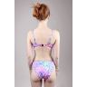 Раздельный купальник ярким розноцветным принтом. Чашка на тонком поролоне и косточках, есть боковые косточки. Низ чашки с небольшим вшитым пуш-апом. Бретели отстегиваются и регулируются по длине, пластиковая застежка на спине не регулируется. Плавки классические бразилиана.