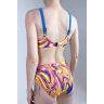 Синий купальник с ярким принтом. Формованный лиф с боковыми косточками, бретели регулируются по длине, пластиковая застежка на спине не регулируется. Плавки-слип с завышенной линией талии.