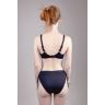 Черный купальник с принтованным лифом. Формованный лиф с боковыми косточками, бретели регулируются по длине, пластиковая застежка на спине не регулируется. Плавки с завязками для регулировки обхвата.