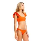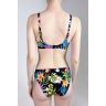 Раздельный купальник Bonnie черного цвета с ярким цветочным принтом. В размерах 38-42 идет уплотненная формованная чашка на косточках, в размерах 44-46 идет формованная чашка на косточках с вкладышами push-up. Лиф с боковой поддержкой, бретели регулируются по длине, пластиковая застежка на спине не регулируется.
