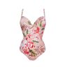 Слитный купальник из коллекции Tropical Fever с формованными чашками на косточках. Бретели регулируются по длине и отстегиваются, на спинке застежка.