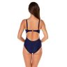 Слитный купальник синего цвета K.8235 с твердой формованной чашкой PUSH-UP на косточке, на спинке нерегулируемая застежка. Бретели регулируются по длине. Купальник декорирован полупрозрачной сеточкой.