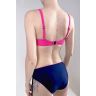 Розовый купальник Laura с чашкой push-up на косточках. Бретели регулируются по длине, пластиковая застежка на спине нерегулируемая. Темно-синие плавки с высокой талией и завязками для регулировки обхвата. Фото обратной стороны купальника представлено в ознакомительных целях и показывает крой задней части, расцветка соответствует основному фото в карточке товара.