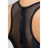 Женский купальник, в спортивном стиле, классического черного цветов. Имеются встроенные съемные чашечки для вашего удобства. Комбинация крупной сетки и гладкой ткани выигрышно смотрится на фигуре. Сзади удобная застежка-молния. Купальник не стесняет движений и подтягивает силуэт.