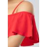 Женский пляжный костюм–топ и трусики в стиле Фламенко. Испанские мотивы навеяны широким воланом топа огненно-красного цвета. Топ имеет внутренний лиф для поддержки груди со съемными формованными чашечками. Бретели топа регулируются по длине. Высокие трусики черного цвета в белый горох – это модная классика, которая придает образу романтичность и женственность.