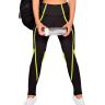 Уникальные легинсы с высокой талией из плотной микрофибры для занятий различными видами спорта. Оригинальные элементы флуоресцентного салатового цвета имеют различные назначения: вертикальные полосы визуально формируют стройный женственный силуэт; сетчатые вставки под коленками облегчают движения и позволяют коже дышать. Для удобства надевания легинсы имеют молнии, украшенные светоотражающей серебристой полосой. Такая же молния есть на заднем кармане леггинсов. В широкий двухслойный пояс вшита резинка для дополнительной фиксации.