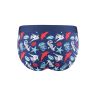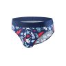 Темно-синие мужские трусы-слипы с ярким принтом на морскую тематику — идеальный кандидат в чемодан на время вашего отпуска. Натуральный хлопок прекрасно отводит влагу от тела, комфортен в жару и устойчив к стиркам, а добавление в ткань эластана обеспечивает хорошую посадку по фигуре и защищает изделие от деформации. Эта модель трусов хорошо подходит для ношения с узкими джинсами или брюками, она незаметна под одеждой и не портит силуэт.