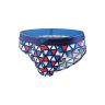 Мужские трусы-слипы с ярким геометрическим принтом выглядят очень спортивно и стильно. Облегающий покрой идеально подходит для ношения с любой одеждой, включая облегающие брюки и джинсы. Темно-синяя расцветка с добавлением красного, бирюзового и белого придает этой модели особый шарм. Трусы сшиты из натурального хлопка с добавлением эластана, они прекрасно держат форму и легко выдерживают даже частые стирки.