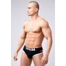 Мужские трусы-слип с «секретом» - внутренним карманом, имеющим съёмный формованный вкладыш. Эта конструкция способствует тому, чтобы джинсы или брюки сидели безупречно, а также обеспечивает оптимальный комфорт. Широкий эластичный пояс имеет логотип спереди и сзади, что выигрышно смотрится с любого ракурса. Эти уникальные слипы выполнены в черном цвете с отделкой контрастными лампасами и кантом.