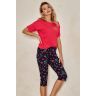 Пижама Dora выполнена из хлопка. Состоит из футболки малинового цвета и принтованных бридж. Пижама очень красивая и комфортная, также будет замечательной домашней одеждой и хорошим подарком для любимого или близкого человека.