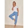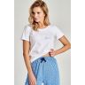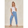 Пижама Leona состоит из белой футболки и голубых хлопковых брюк с милым принтом. Идеально подходит для сна и в качестве домашнего комплекта.