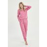 Утепленный домашний костюм Eryka выполнен из хлопкового полотна, состоит из лонгслива с длинными рукавами и зауженных брюк. Лонгслив свободного кроя с круглым вырезом горловины. Брюки на широкой мягкой резинке, по бокам карманы.