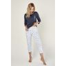 Тесно-синяя пижама из хлопка Magnolia. Однотонная футболка с принтом на груди и брюки с цветочным принтом. Футболка с длинным рукавом и круглым вырезом горла. Укороченные брюки с мягкой резинкой в поясе. Идеально подходит для сна и в качестве домашнего комплекта.