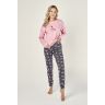 Стильная женская пижама Ruby. Пижама выполненная из качественного и мягкого хлопка состоит из кофты и брюк с милым принтом. Кофта свободного кроя, с длинными рукавами и круглым вырезом горла, брюки с мягкой резинкой в поясе, внизу обработаны манжетами. Пижама очень красивая и комфортная, также будет замечательной домашней одеждой и хорошим подарком для любимого или близкого человека.