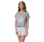 Пижама Amani состоит из рубашки и прямых брюк. Материал декорирован бежевым принтом "полоска". Идеальный вариант не только для сна, но и для домашнего отдыха.