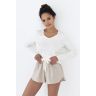 Пижама Beatrix состоит из лонгслива и шорт. Лонгслив с круглым вырезом горловины и длинным рукавом. Шорты декорированы бантом на поясе. Состав шорт: хлопок 80%, полиэстер 20%. Идеальный вариант не только для сна, но и для домашнего отдыха.