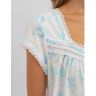 Пижама Eileen West (США) капри и свободного кроя блуза с коротким рукавом изготовлены из хлопкового трикотажа голубого цвета с цветочным принтом. Горловина и кокетка декорированы ажурным кружевом.