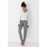 Пижама Hattie состоит из однотонного лонгслива и принтованных брюк. Лонгслив по силуэту с длинными рукавами. Брюки прямого кроя на широкой резинке. Состав брюк: хлопок 80%, полиэстер 20%. Идеальный вариант не только для сна, но и для домашнего отдыха.