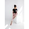 Яркая пижама Ilaria состоит из зауженных укороченных брюк и футболки свободного кроя. Футболка однотонная с круглым вырезом горловины и контрастным карманом с принтом сердечки по аналогии с брюками. Элемент декора: миниатюрный атласный бантик.