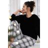 Пижама Meredith состоит из свитшота и брюк в крупную клетку. Состав брюк: хлопок 70%, полиэстер 29%, модал 1%. Идеальный вариант не только для сна, но и для домашнего отдыха.