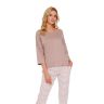 Бежевая хлопковая пижама. Состоит из футболки с рукавом 3/4 и укороченных брюк в полоску. Удобный и стильный комплект отлично подойдет для сна, отдыха дома или для повседневной жизни.