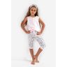 Детская пижама Sheena состоит из нежно-розовой майки на широких бретелях и принтованных бридж. Бриджи на мягкой широкой резинке, украшены атласным бантиком. Идеальный вариант не только для сна, но и для домашнего отдыха.