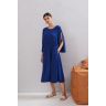 Синее платье миди. Изделие свободного ĸроя и фасона. На спине красивый вырез, фактурный рукав.
