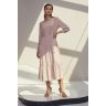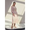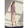 Летнее платье-сарафан с длинными рукавами. Изделие выполнено в нежном пастельном розовом цвете и декорировано ажурными элементами. Платье длиной миди, подол доходит до щиколоток. Нижняя часть платья выполнена в свободном А-силуэте из нескольких составных частей, расширяющихся к низу и формирующих сложный и элегантный рисунок юбки. На передней сторонке у груди присутствует вставка из полупрозрачной кружевной тесьмы, которая лишний раз выгодно подчеркивает красоту и изящество фигуры. Фасон платья не стесняет в движении и позволяет чувствовать себя комфортно в городе и на отдыхе. Втачаные рукава платья длиной в три четверти, заканчиваются очаровательными манжетами на небольших пуговицах.