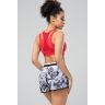 Женские шорты для занятий спортом. Широкая брендированная плотная резинка-пояс. Шортики двойные: сверху свободные из тончайшей микрофибры с абстрактным рисунком; снизу – в обтяжку, черные, с плоскими швами, для максимальной уверенности и комфорта при активном движении. Идеально смотрятся с кроп-топом MF-96 из такой же ткани.