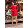 Красные шорты DK03 07 с завышенной талией и с карманами, пояс на широкой резинке. Сбоку вышивка с логотипом.
