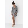 Сорочка Dora рубашечного типа с принтом. Рукава 3/4. Свободный силуэт и длина чуть выше колен. На груди карман в цвет основной ткани. Сорочка застегивается по всей длине.
